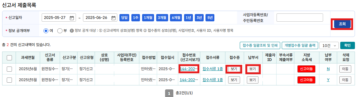 기본적으로는 비공개로 되어있지만 저는 개인정보 공개로 적용하고 신고서를 출력합니다.