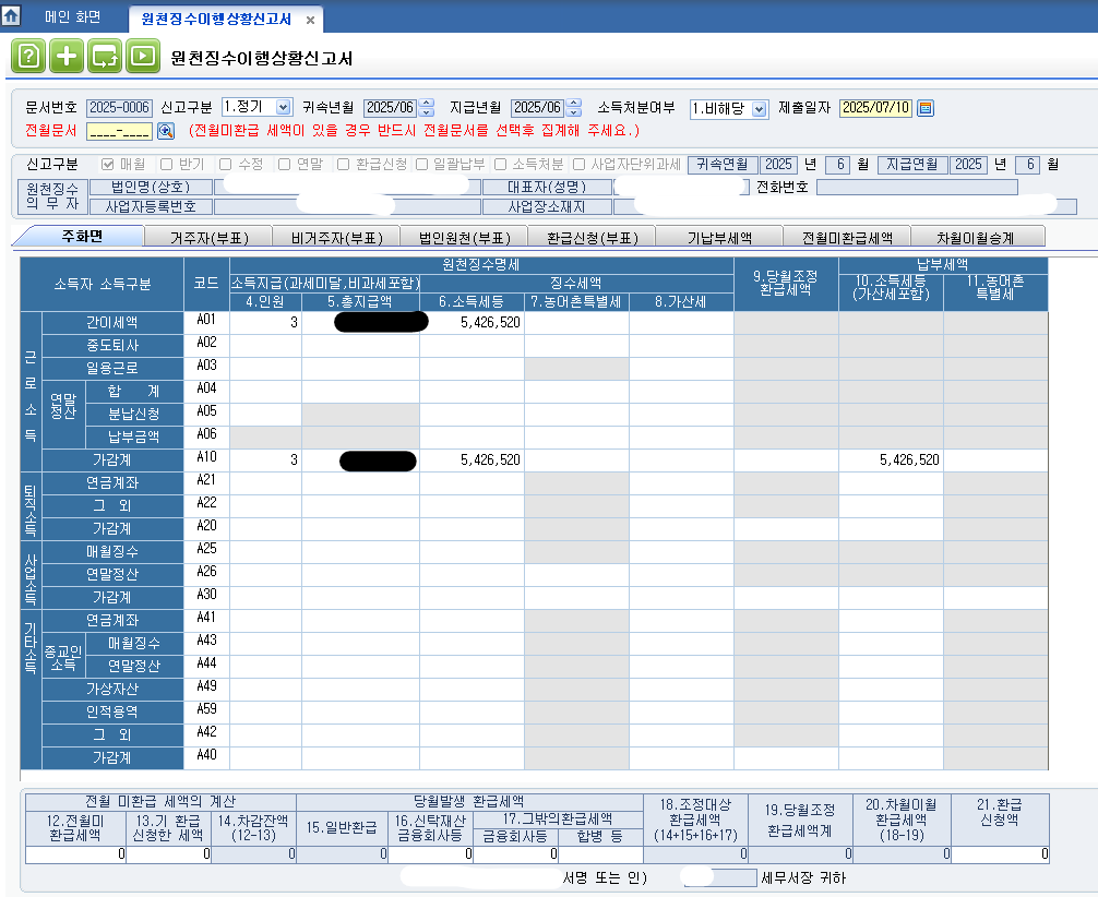 예: 6월 급여/소득 → 7월 10일까지 원천세 신고 및 납부
