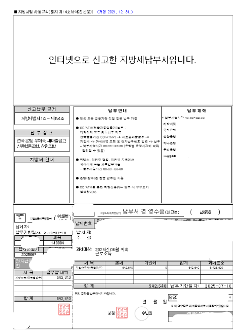 아래는 지방소득세 납부서를 출력하면 나오는 서식입니다.